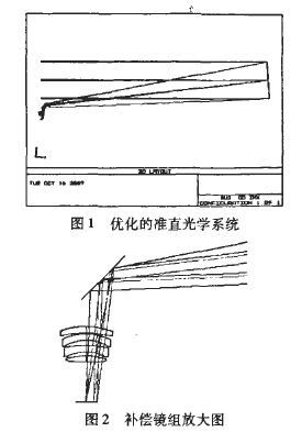 在此系统中主镜采用抛物面镜,对其面型进行2次,4次,6次修剪,主镜与次镜优化组合以对球差得到较好校正,但残余慧差、像散较大,今在次反射镜后加补偿透镜组,使其自身校正色差且与前镜组像差匹配,最后达到满意的效果。
